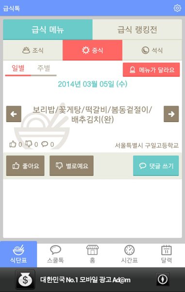 이번에 새로 나온 급식톡은 다른 식단표 어플들과는 다르게 디자인이 뭔가 예뻐요