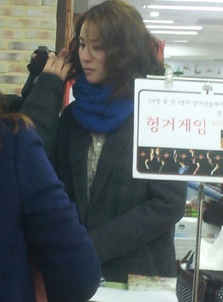 드라마 촬영장에서 스탭들에게 사인해 주는 모습