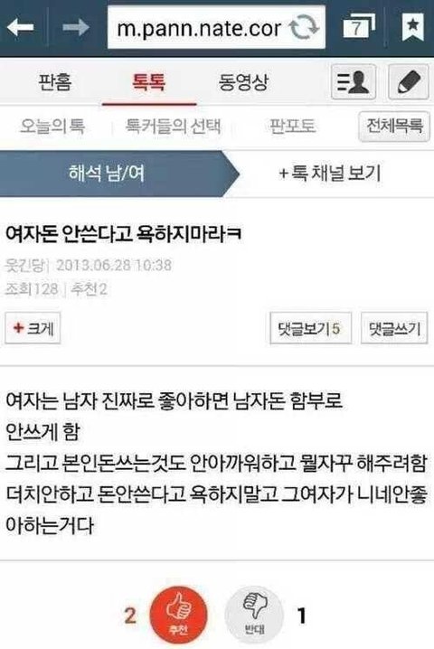 무섭다 공감댓글쓴여자들... 그 남자는여자가좋아서 사줬을까..? 그냥계산은해야되겠고 첫만남에 그쪽이먹은거는그쪽이내세요 하는것도 모양세가 이상하니까 어쩔수없이 돈쓰는 사람도있을텐데 그리고 계속얻어먹으면 자존심안상하나 그지취급받는거같던데