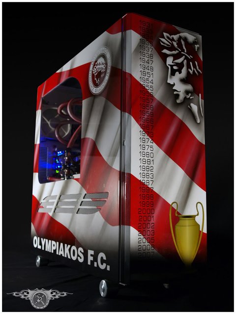 마지막으로 해외 올림피아코스(그리스 프로팀) 팬이 도색한 케이스 및 PC샘플입니다. 정말 예술이네요.