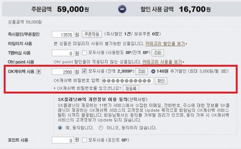 결제 시 OK캐쉬백 포인트 조회/적립/사용 하실 때