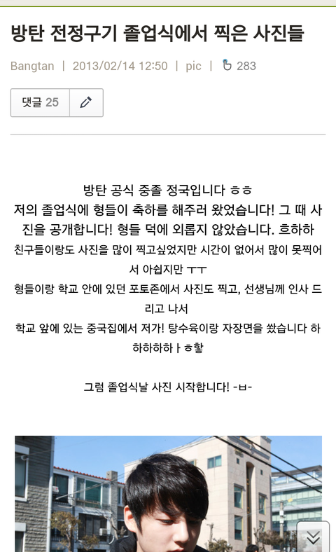 말투봐ㅋㅋㅋㅋㅋㅋ정국이 졸업때도 형들 짜장면사줬구나ㅋㅋㅋㅋㅋㅋㅋ아무리 생각해도 국이 컨셉을 잘못잡은듯. 글에 점만 붙이면 단호해보일줄 알았지?ㅋㅋㅋㅋㅋㅋㅋㅋ짐니 얼마전인데도 왜 이렇게 달라보임ㅋㅋㅋㅋㅋ?