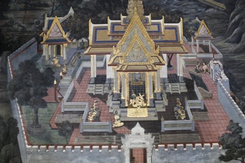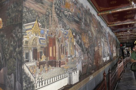 이런 벽화가 많이 그려져있는데 수시로 태국 대학생들이 보수작업 하고 있습니다.