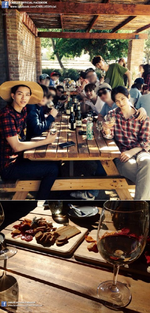사진 속 씨엔블루는 스태프들과 와이너리에서 즐거운 한 때를 보내고 있다.