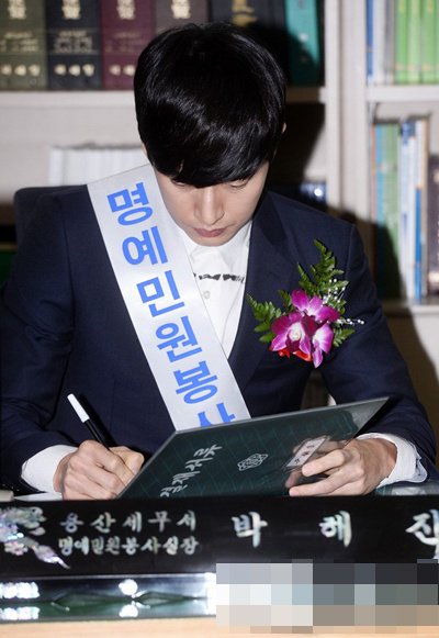 납세의 의무를 잘 수행한 대가로 상장과 명예 민원봉사실장직을 받은 박해진