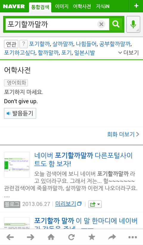 포기할까말까라고 검색하면