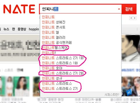 포털사이트에 인피니트 뭐해대해서 검색했는데