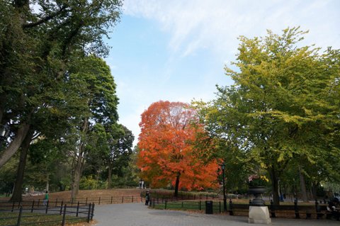 조금 걷다보니까 붉은색과 푸른색의 나무들이 울창하게 우거져 아름다운 가을의 뉴욕을 맘껏 뽐내고 있었음.