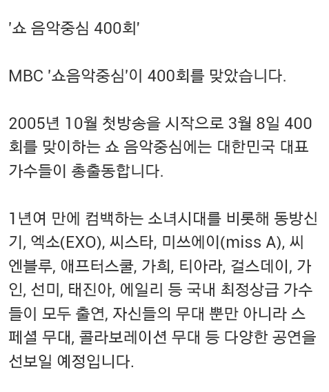 헐헐..이번주 음중에 엑소나와 ㅠㅠㅠㅠ