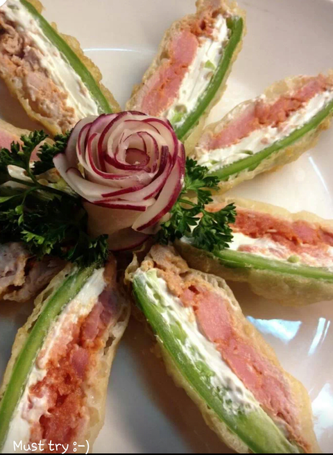 이건 고추튀김이에요. 크림치즈랑 스파이시 투나가 들어가있어요.