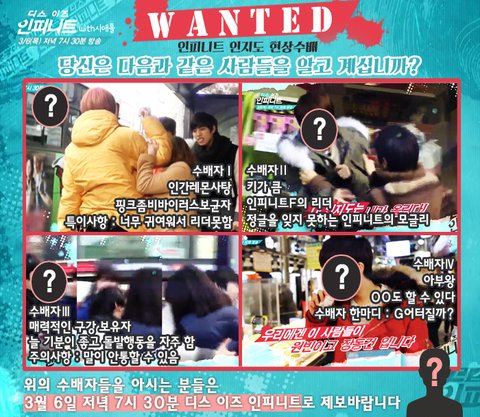 [디스이즈인피니트 인지도특집] 인지도를 높이기위한 인피니트멤버들의 처절한 몸부림! 목요일 저녁 디스이즈인피니트에서 확인하세요! 그 전에 여러분은 인피니트 멤버를 얼마나 인지하고 있는지 먼저 확인하고 가실게요~