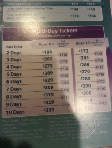 나는 이틀동안 2개의 파크를 갈 예정이므로 이틀짜리 멀티데이 티켓을 삼.