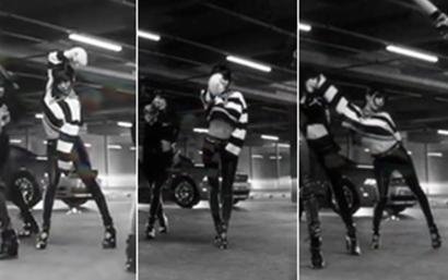 스트라이프 크롭 니트랑 스키니진 입고 춤추는데