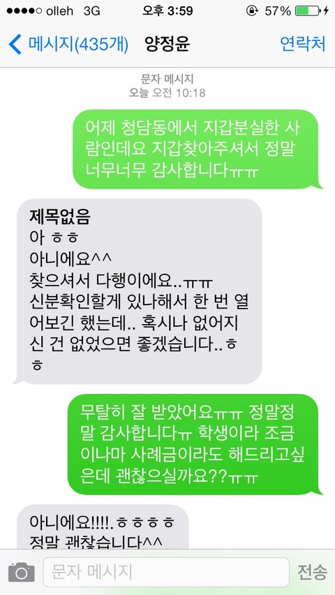 그리곤 당장 지갑을 찾아주신분께 감사문잘 보냈지요