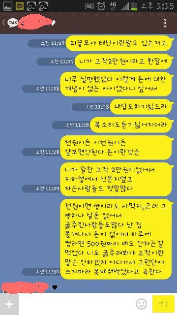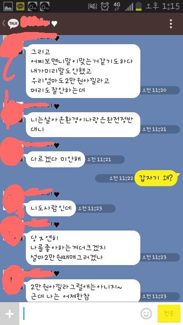 그리고 나서 오늘 낮,출근을 늦게하게되었는데 출근전에 또 톡했습니다.