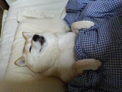 사람 처럼 이불 덮고 잠든 귀여운 애완 동물들