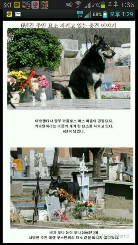 의식을 잃은 주인을 안전한 곳으로 끌어당겨 옮겨놓고 휴대전화를 얼굴 앞에 가져다 놓았습니다.