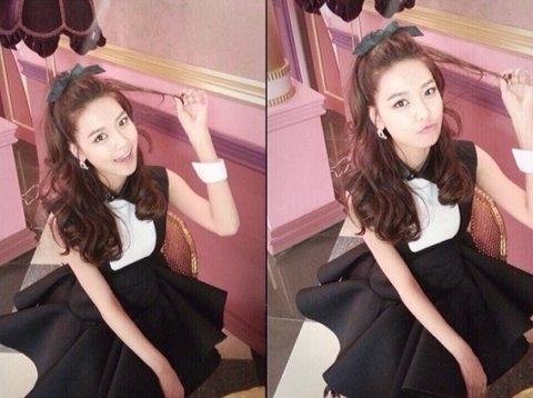 머리띠 컨셉에 맞춰 블랙 드레스 확 퍼뜨려서 앉은 모습이 쏘 러블리!