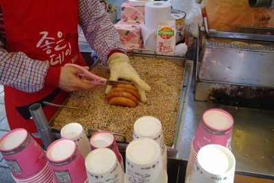 한참 돌아다니고 있는데 어묵가게 아주머니와 아저씨가 와서 어묵좀 먹고 가라고