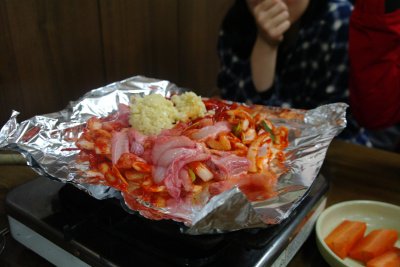 다른 음식들도 많이 있었어요 저기 보이는 의자에 쭈그려 앉아서 그래도 열심히 먹었다는...