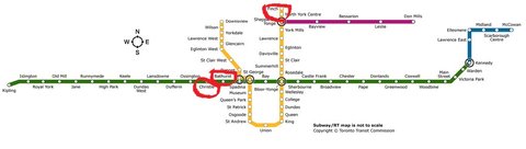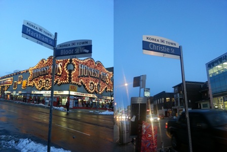 토론토의 한인타운은 Bathurst역과 Cristie역 부근(Green라인) 과 Pinch역(Yellow라인) 두군데에 위치하고 있습니다. 전자의 한인타운이 오래전에 생긴 한인타운이고 후자의 한인타운은 비교적 최근에 생긴것이라고 합니다.