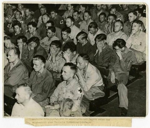 자신들이 한 짓에 역겨워하고 눈물을 보이는 독일군 포로들.1945