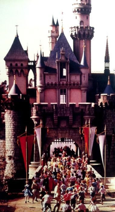 디즈니랜드이 첫 개장 초등학생들의 러쉬. 1955