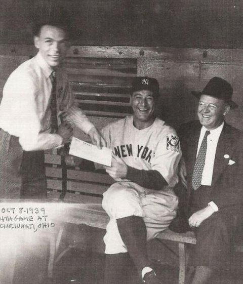 양키즈 선수 루게릭에게 사인요청을 하고 있는 가수 겸 영화배우