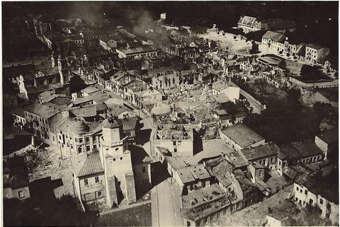 독일 공군의 폭격을 받은 폴란드의 도시 비엘룬 이 폭격으로
