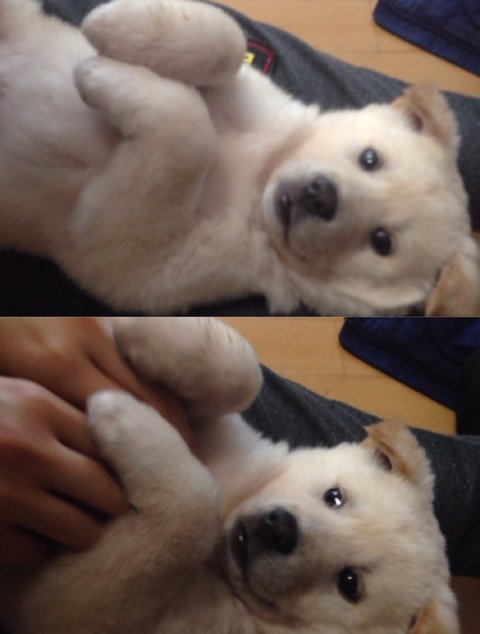 다른 강아지들은 가슴 쓰다듬는건 좋아한다는데 우리 꽁이는 기겁을함...
