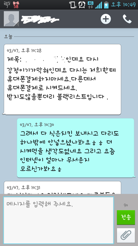 이 문자내용처럼 제가 블랙리스트에 오르고 이런 문자를 받을만큼 잘못했는지 궁금하네요