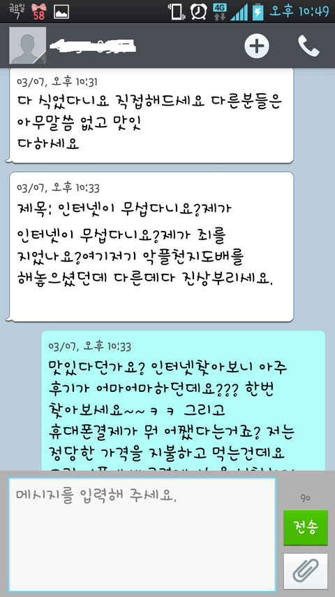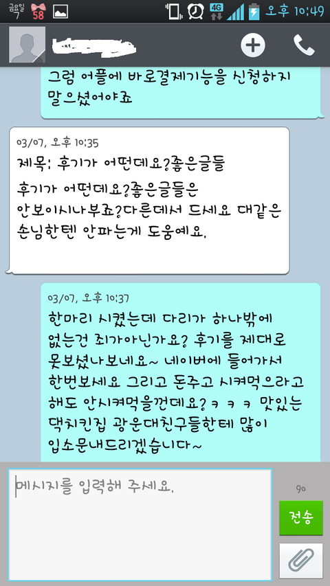 치킨이 늦게가서 그런것같다고 미안하다고 사과라도 했다면 끝났을 것을