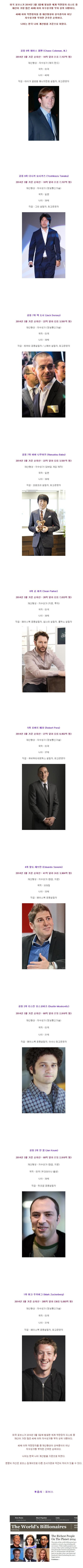 세계 억만장자 중 40세 이하 자수성가형 부자 BEST10