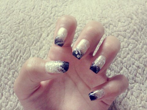 엄지 중지 약지는 금색 글리터가 들어간 검정 매니큐어를 발라줬는데