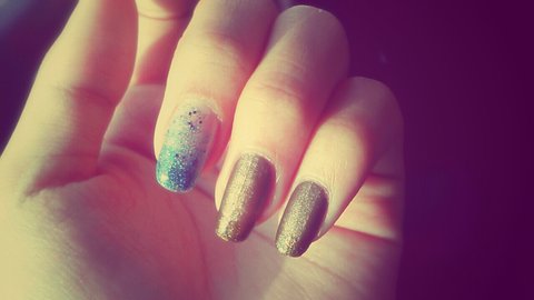 중지는 파란색의 작은 글리터 매니큐어로 그라데이션 준거구요