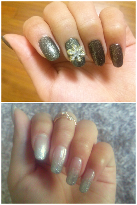 다른건 카키골드색의 매니큐어를 바른다음 집에가서 매트탑코트 바르고 또 프렌치로 젤리 탑코트를 발라줬어요!