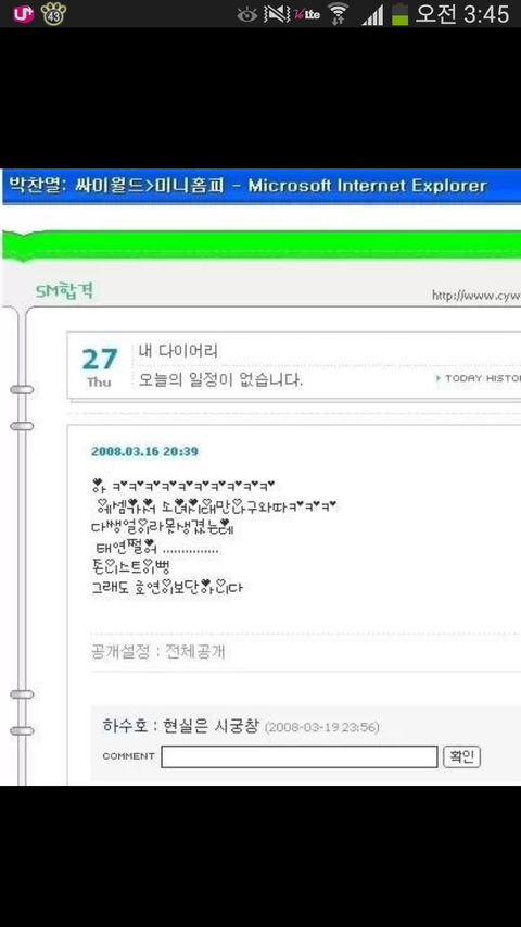 찬열의 싸이월드에서의글씨체가 저글씨체가 아닌캡쳐화면도 있구요. 물론 글씨체는 바꿀 수 있지만 ...네_ 그걸 찬열이가 다운 받아서 썼을 가능성은 희박하다고 생각합니다_