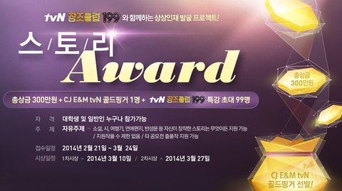 1차 합격자는 tvN창조클럽 199에 출연해 특강을 들을 기회가 주어지고, CJ E&M에 지원시 가산점이 부여되는 골드핑거가 될 자격이 주어집니다. 나 정도 글 센스라면, 잘나가야 하는 거 아니냐고 생각하시는 분들 많으시죠? 함께해요.