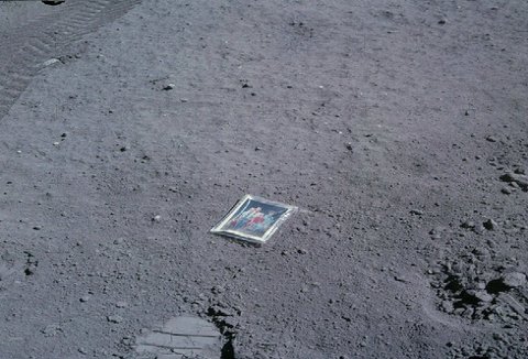 그의 가족 사진을 달표면에 두고 찍은 사진