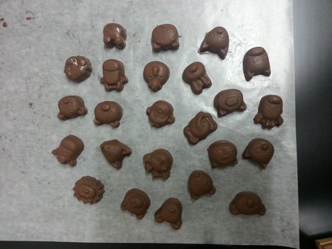 요건 걍 동물모양 몰드에 중탕한 쵸코렛과 크런키를 섞은걸 부어서 만든거에용ㅋㅋ