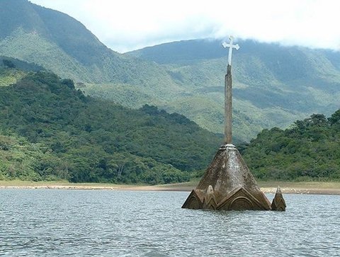 댐 건설로 인해 남겨진 건축물로 교회의 모습이 상어의 입과 비슷해 상어교회로 불리운다
