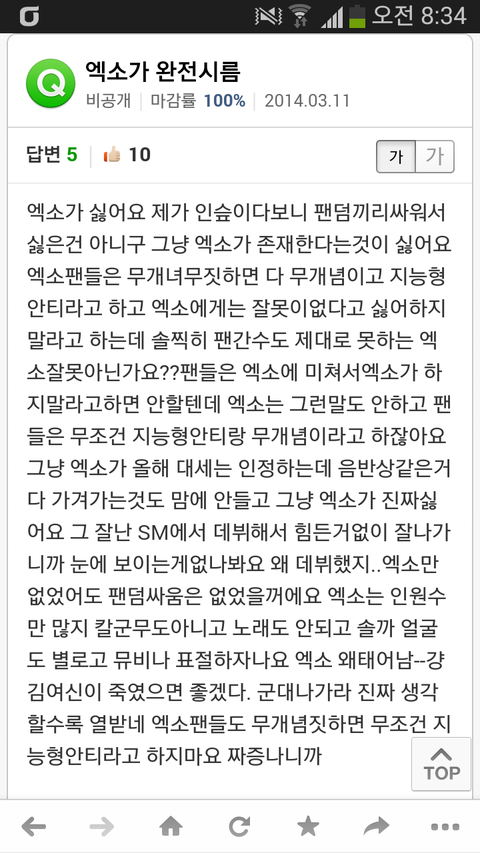 엑소팬이 저러면 전부 캡쳐하고 득달같이 달려들어서 욕하면서 자기들이 그러는거는 다들 무관심하네ㅋㅋ