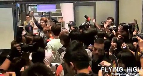 엑소를 본 팬들이 마구 몰려들자 공항은 질서가 몹시 나빴다