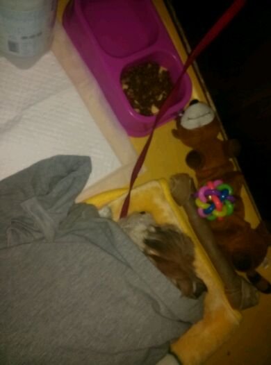 4. 강아지 패드, 사료, 장난감. 아주큰 개껌(저희집에 있던건데 저 조그만 녀석이 저 뼉다귀를 좋아라해서 함께 보냈음) 강아지가 깔고 있는 담요