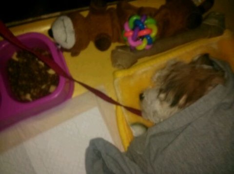 입양자분께서 잘왔다고 문자보내주셨는데 컴컴한방에 2개월된 강아지 목줄로 매놓으셨더라구요