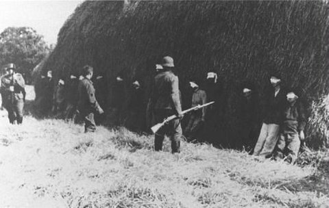 어느 젊은 독일 병사(사진 중앙, 헬멧을 쓰지 않은 왼쪽)는 16명의 유고슬라비아 시민의 학살에 참여하는 것을 거부합니다. 그는 그의 상사에게 명령 불복종으로 사살되었습니다. 그는 민간인들을 죽이는 대신 자신의 죽음을 선택하였습니다.