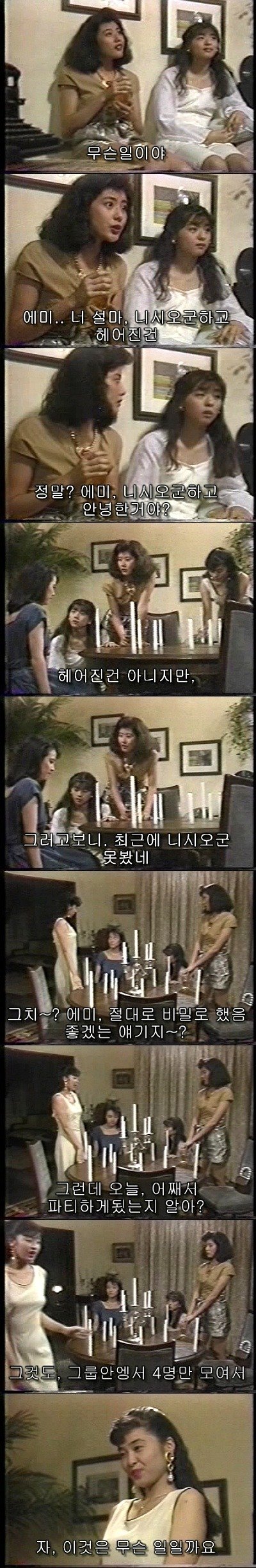 촛불켜놓고 모여 앉은 여주들. 서로의 비밀을 공개하려는듯.