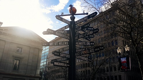 중심에 수많은 표지판들이 늘어져있는데 이것이 포틀랜드의 대표사진 하면 꼭 나오는 이정표입니다.