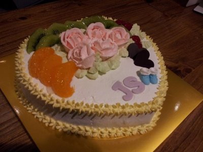 이건 친구 어머님의 생신때 친구와 같이 만든 케잌이에요. 장미꽃은 제가