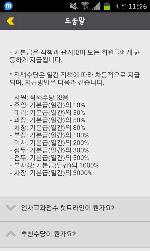 직책별로 차등지급 매일해주고요 기본급도 매일주고요
